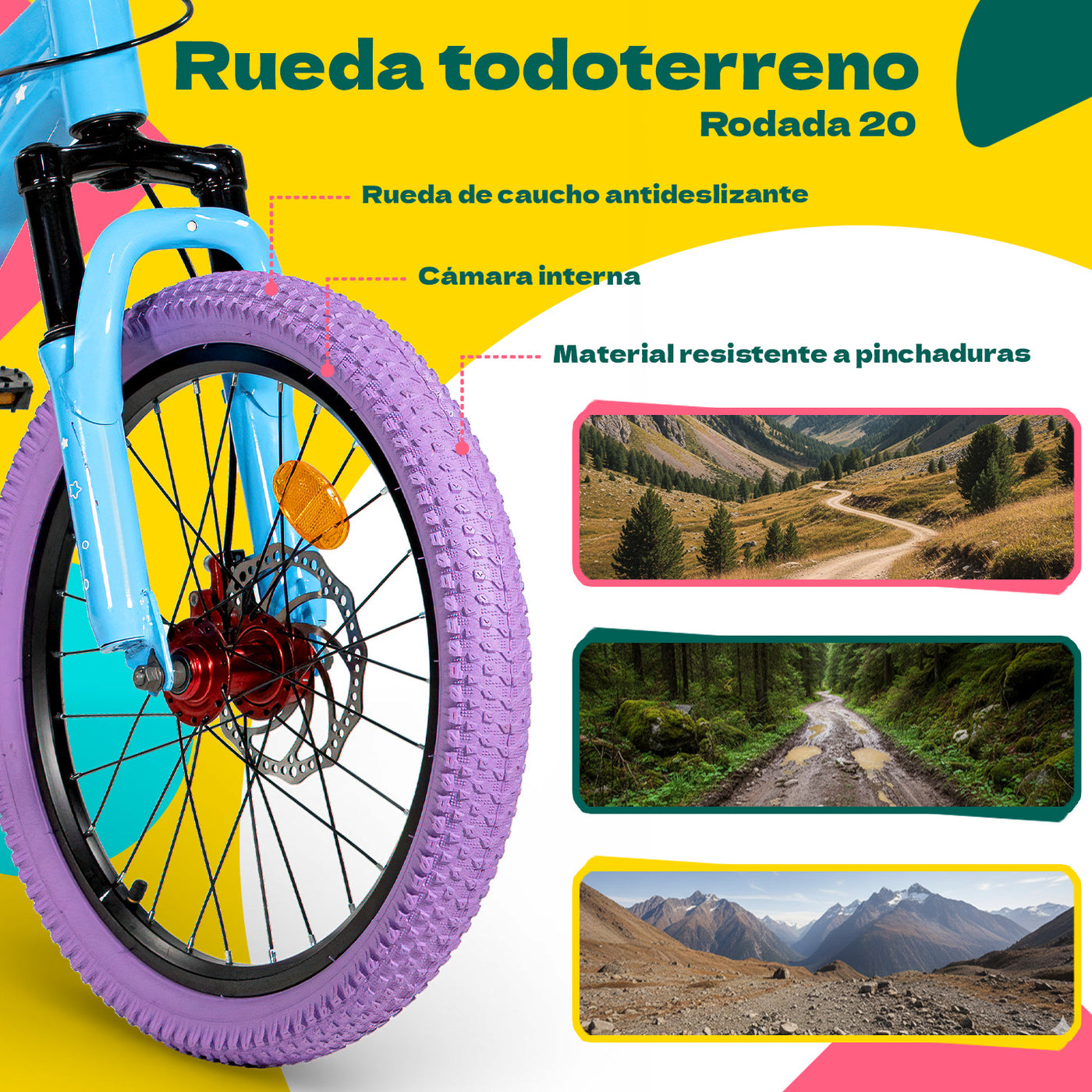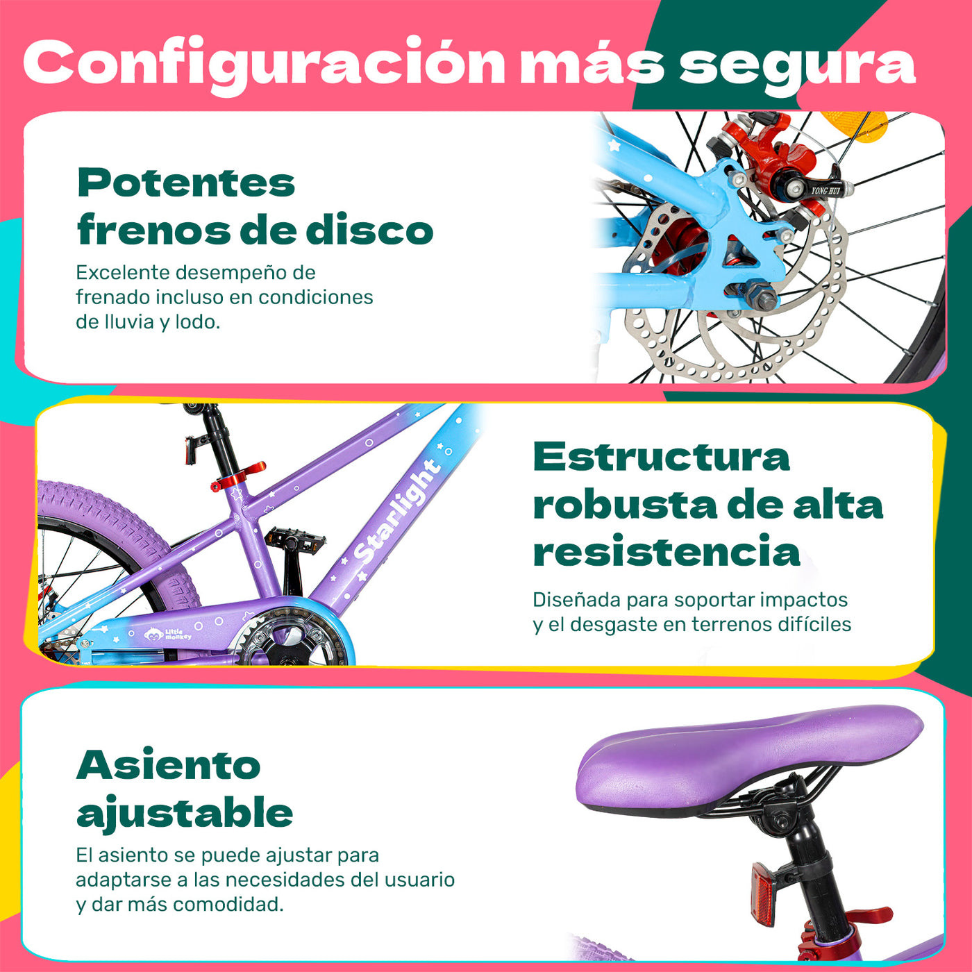 • ESTRUCTURA ROBUSTA Y DURADERA. La Starlight rodada 20 soporta hasta 80 kg gracias a su marco resistente y de alta calidad. Es ideal para niños activos que buscan una bicicleta resistente que los acompañe en sus actividades diarias sin preocuparse por el desgaste.
