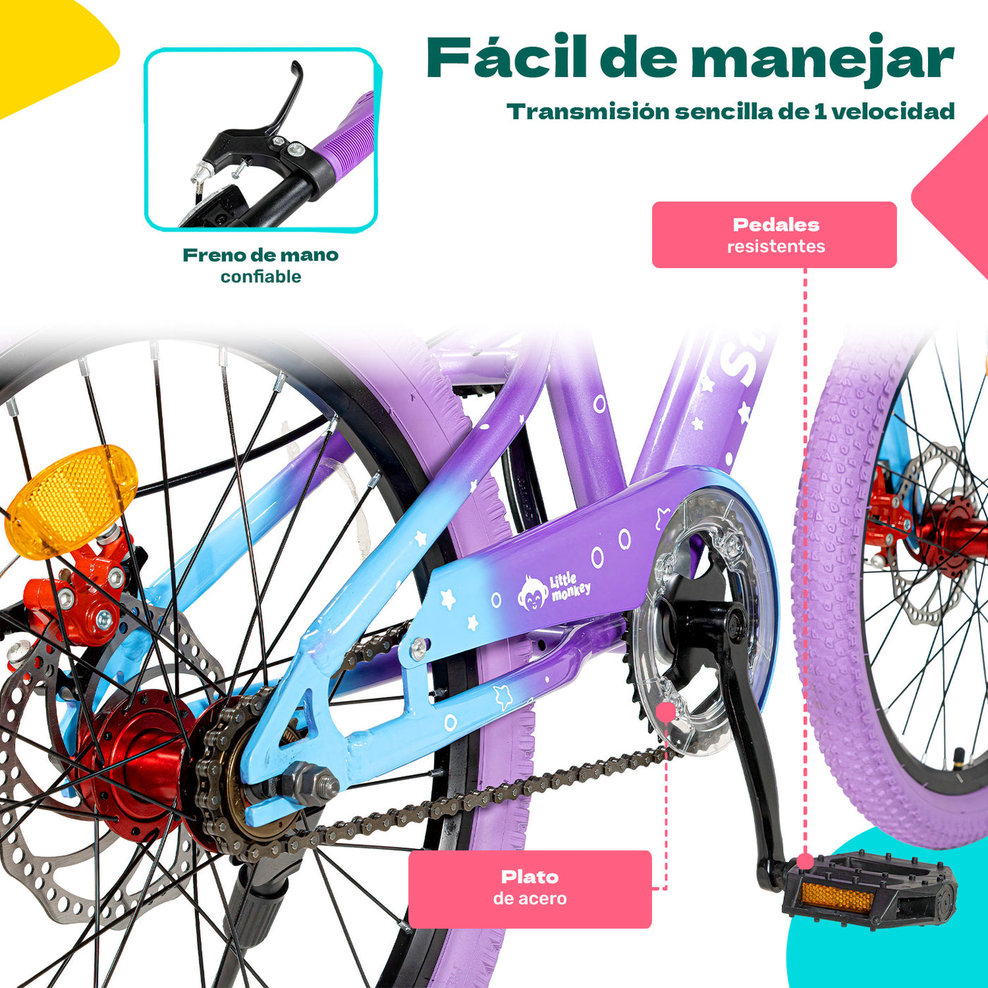 Bicicleta Infantil Rodada 20 Niños Bici Starlight Color Morada