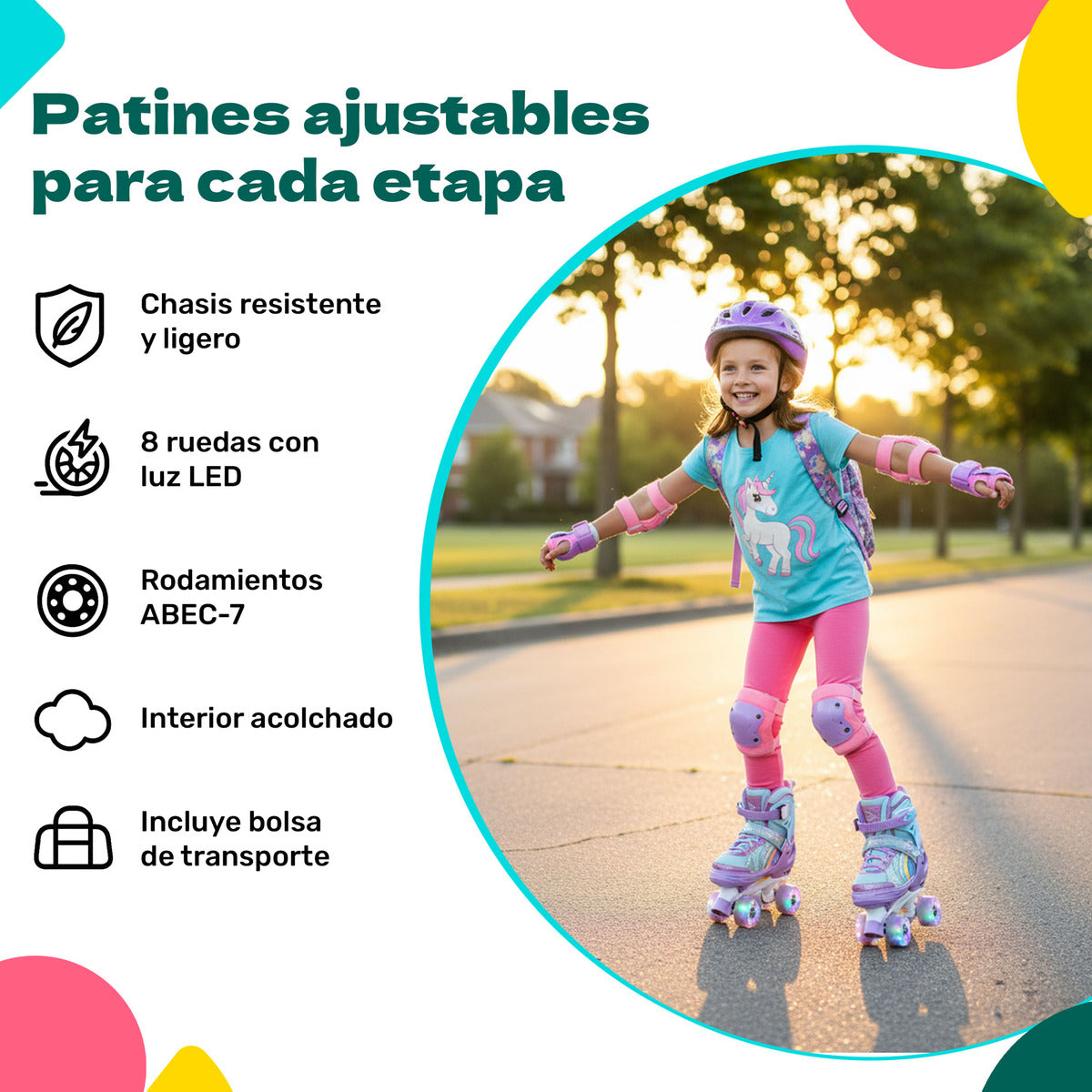 Patines 4 Ruedas Luz Led Ajustables Niñas Niños Estilo Quad