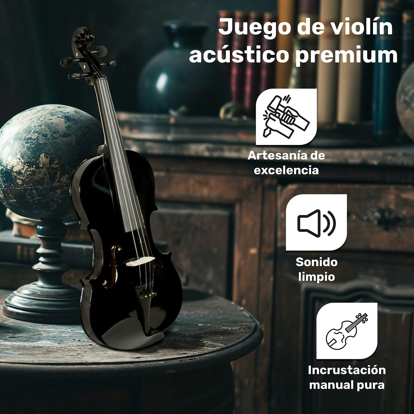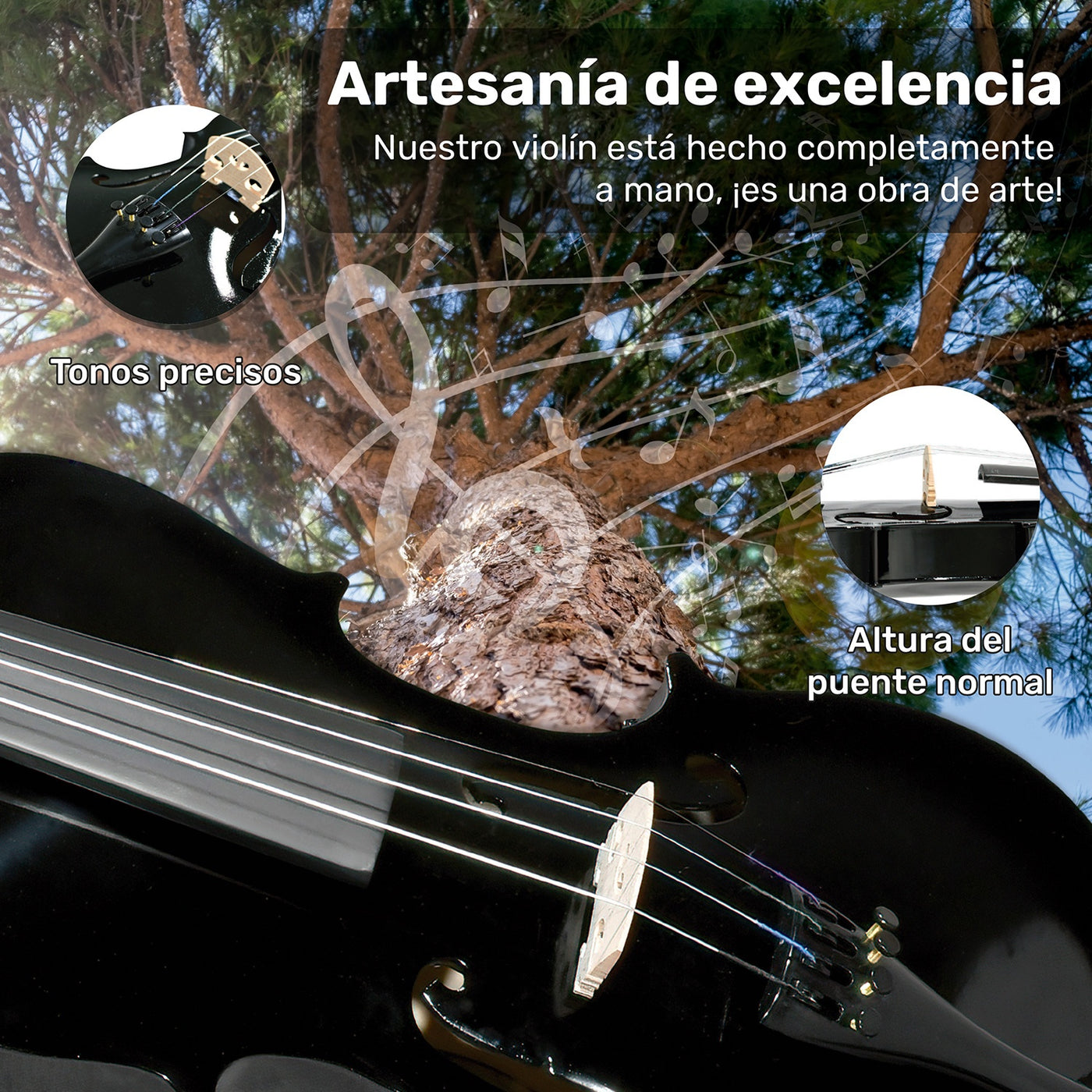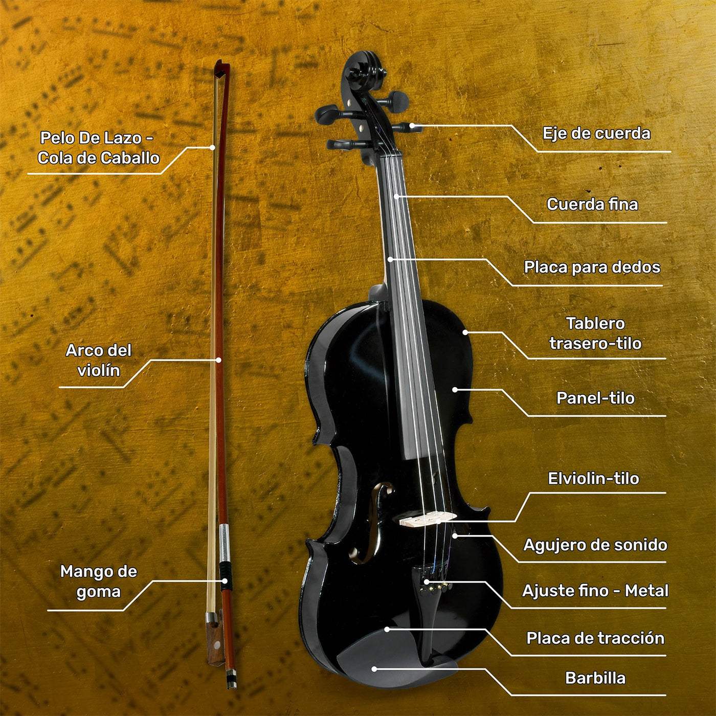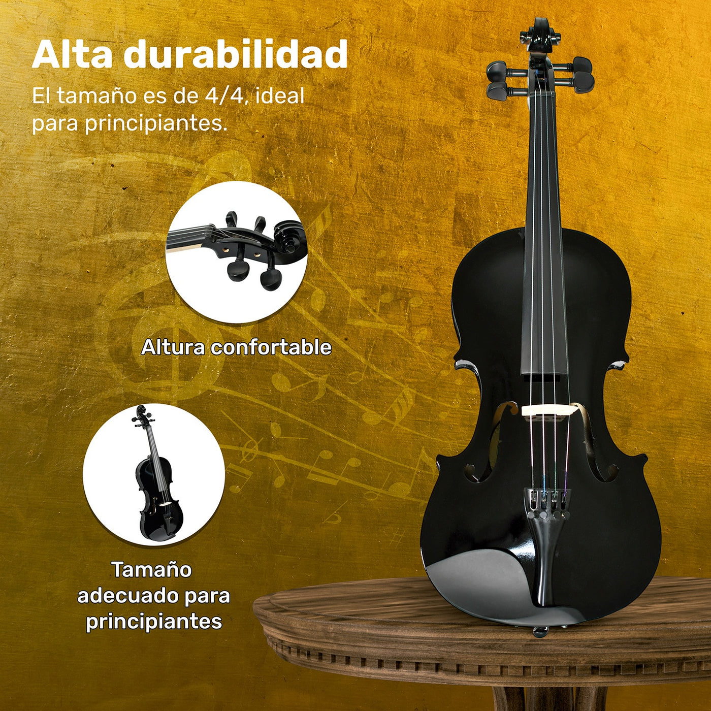 - Violín Acústico 4/4 Incluye Arco, Brea y Estuche Color Negro