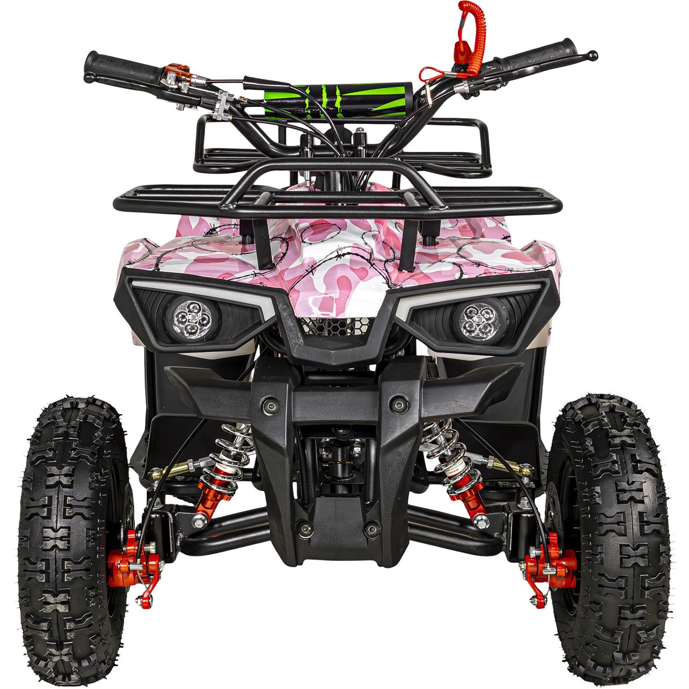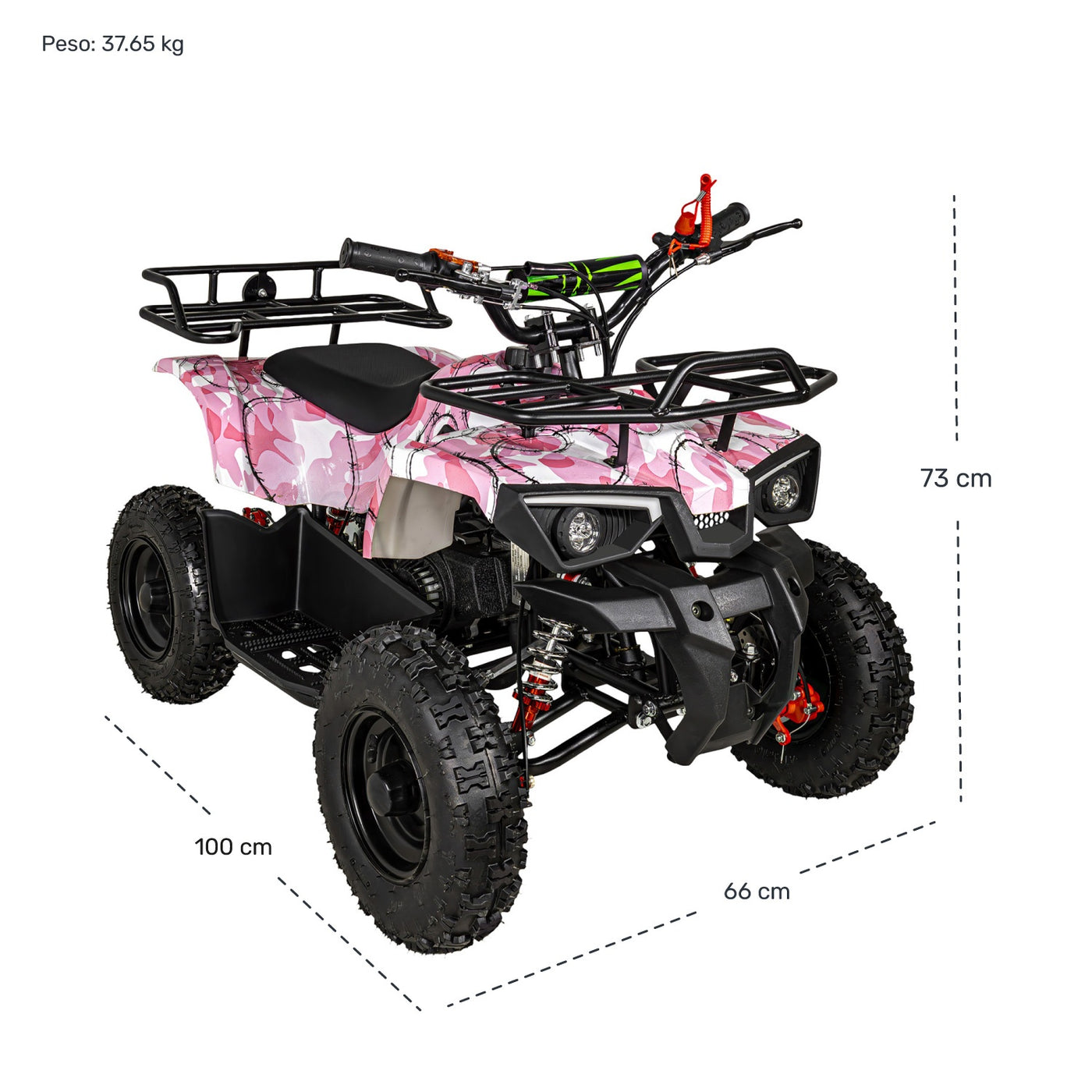 - Encendido con cuerda y cable de seguridad que apaga la cuatrimoto al ser jalado.