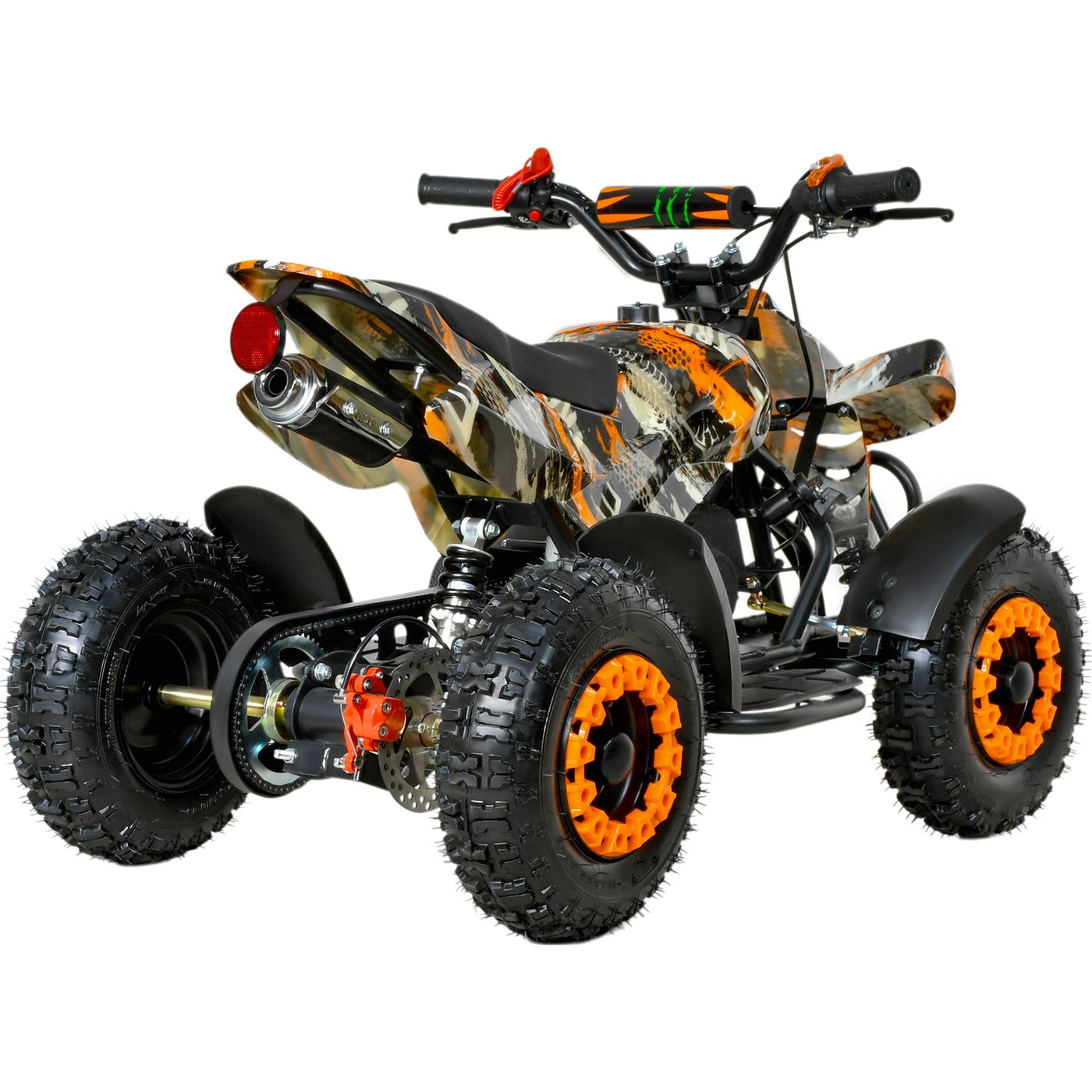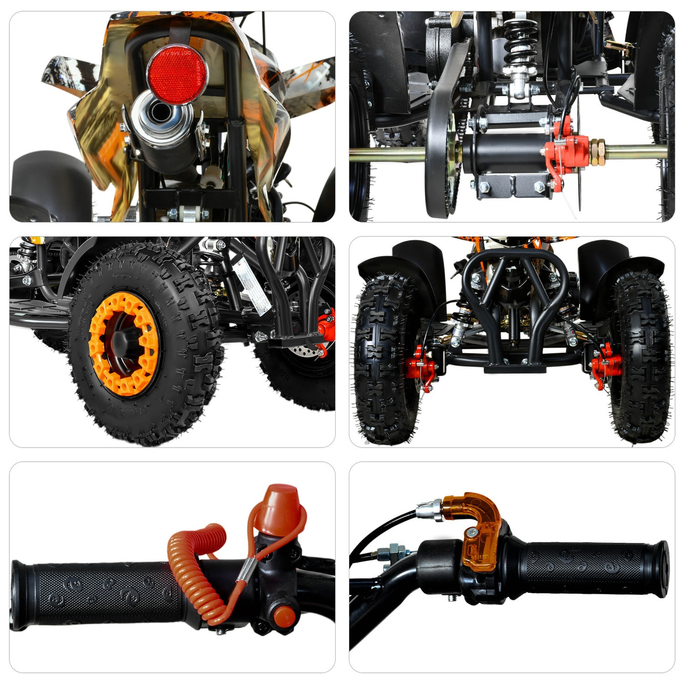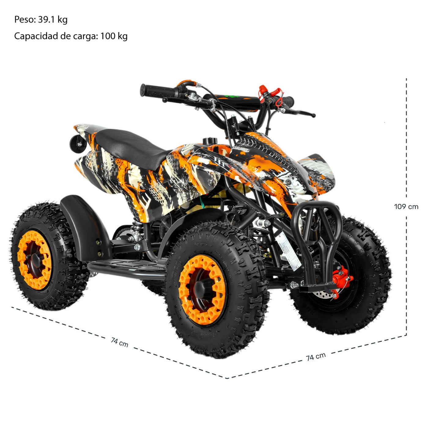 • POTENCIA Y RENDIMIENTO CONFIABLE. Cuatrimoto monocilíndrica de 49CC con motor a gasolina diseñada para aventuras emocionantes. Su tamaño y potente motor hacen que sea ideal tanto para principiantes como para expertos que buscan una experiencia de manejo ágil y eficiente. ¡Perfecta para explorar al aire libre con estilo y potencia!