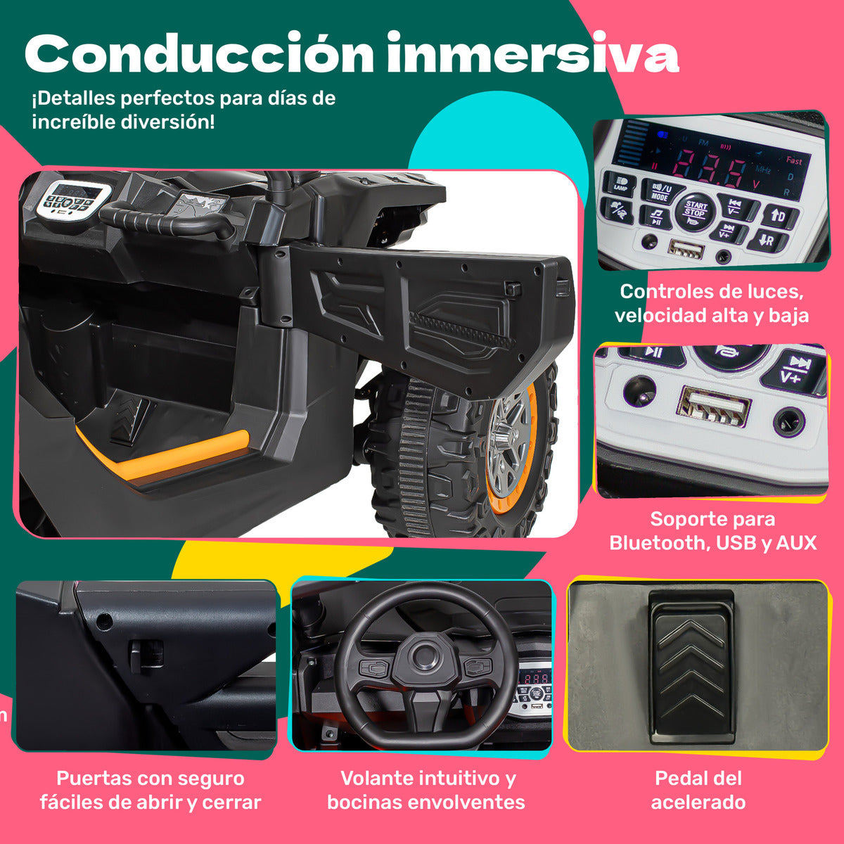 Su diseño tipo BUGGY proporciona una experiencia única de conducción todoterreno que los niños adorarán.
