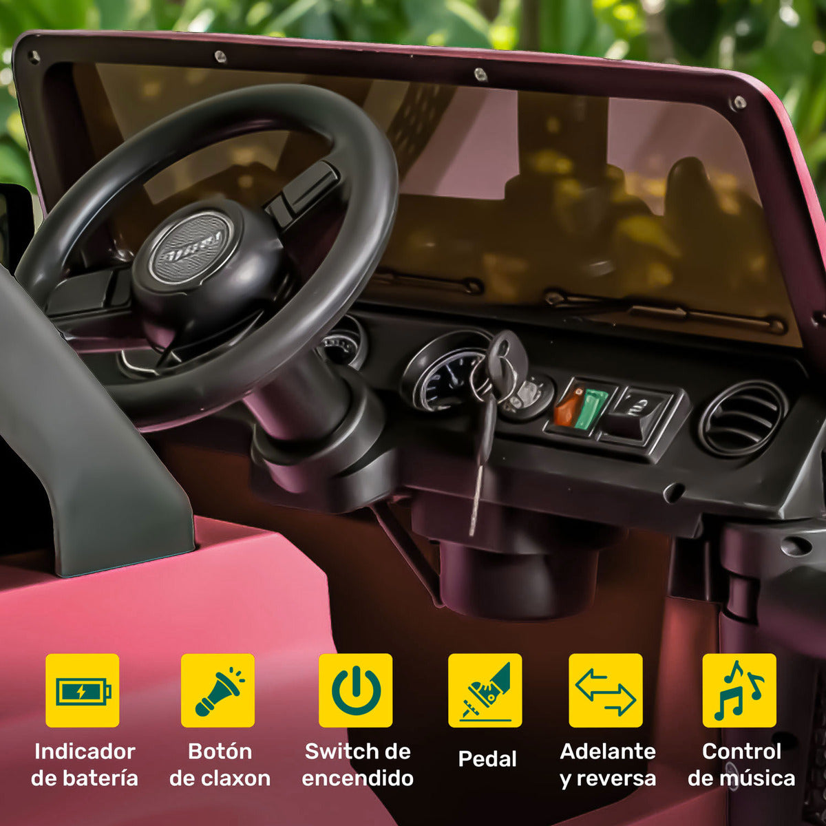 Incluye sistema de encendido con llaves reales, luces LED, sonidos integrados, modo mecedora, canciones y ¡hasta historias! Ideal para niños que buscan una experiencia de conducción completa y llena de magia.