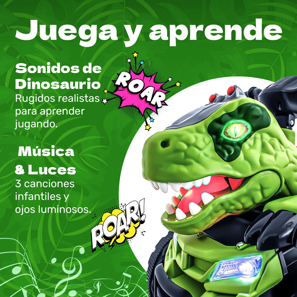 Moto Electrica Dinosaurio Luz Led Montable Electrico Sonidos Color Verde