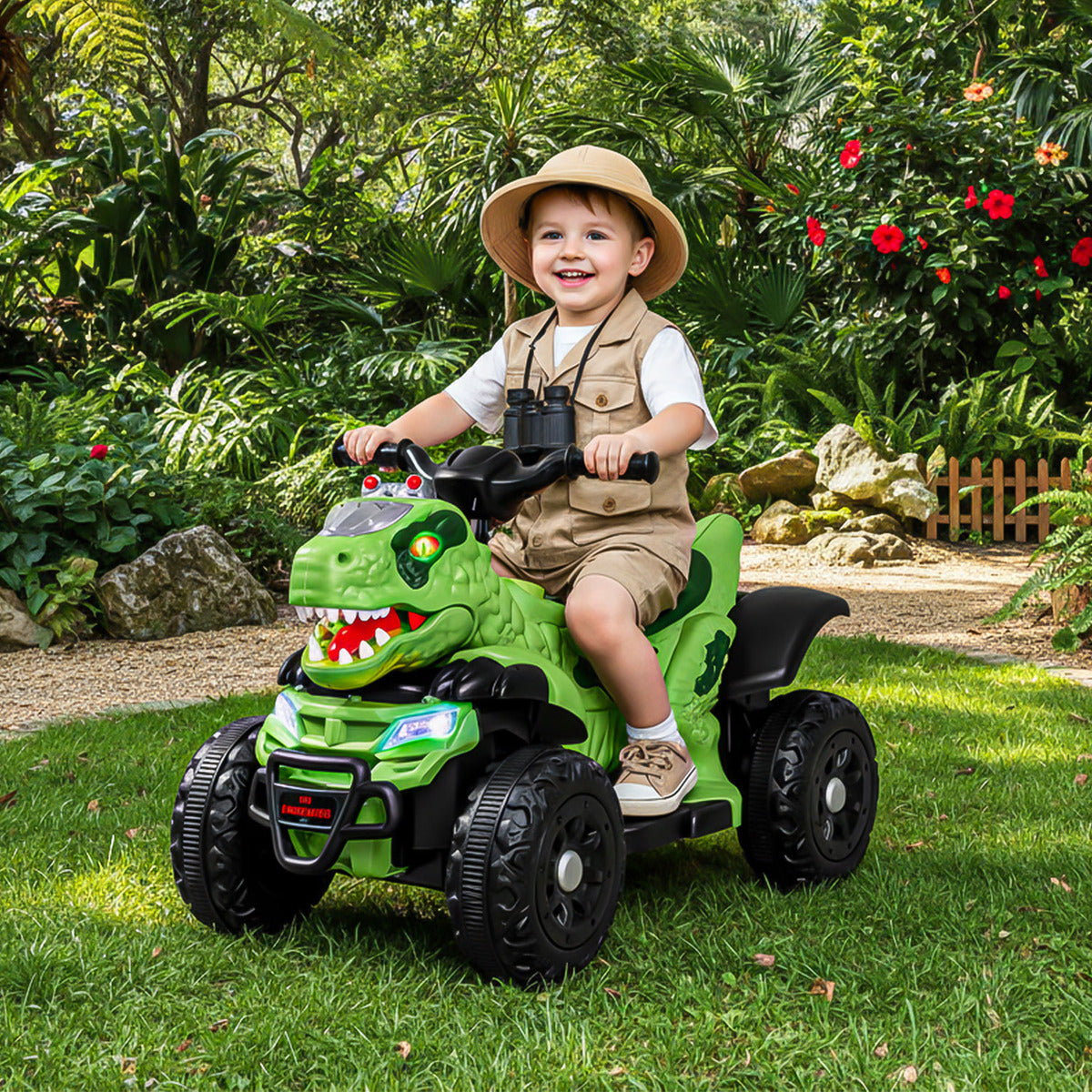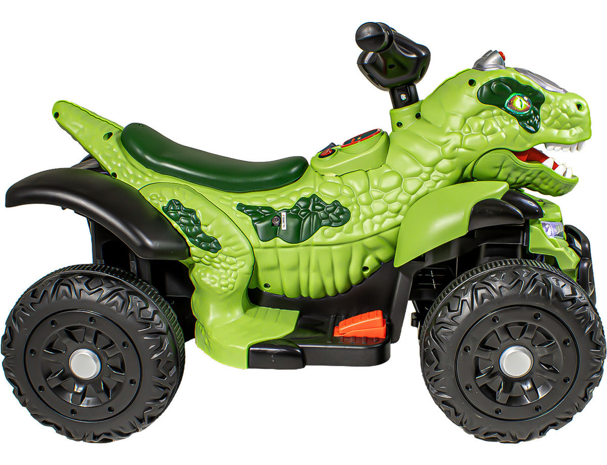 Con su forma robusta y acabado verde mate, simula un vehículo de patrullaje jurásico. Su estética despierta la imaginación y convierte cada recorrido en una misión llena de fantasía, rugidos y descubrimientos.